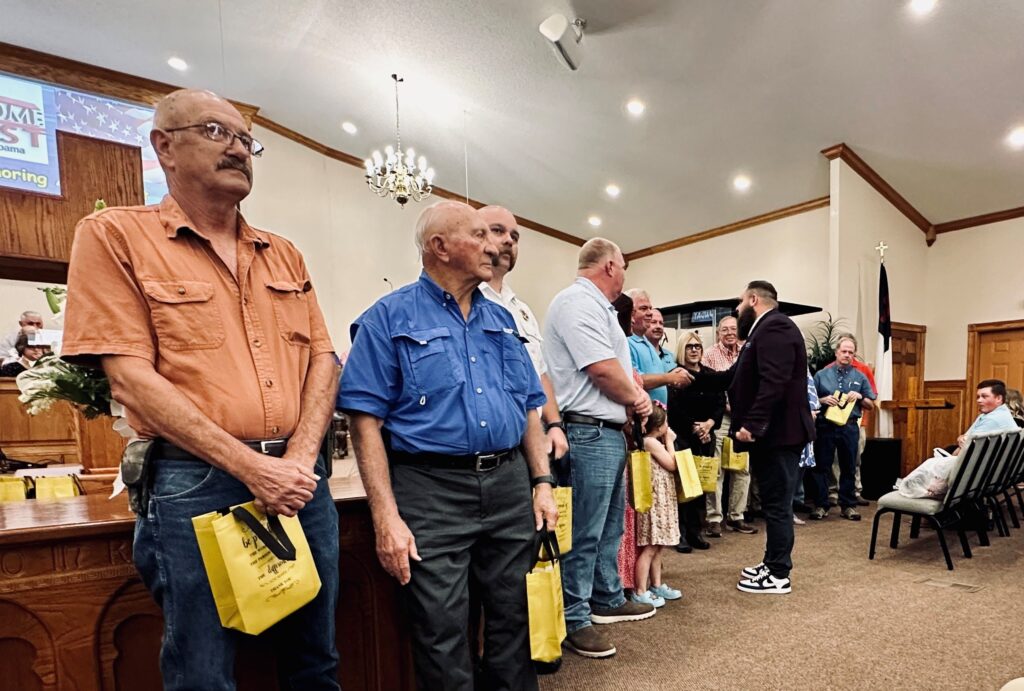 Recently Lanny Lewis’ hay bales caught on fire and the volunteer fire department responded. The very next week, he was able to share that story during New Home Baptist’s Sunday service as they honored the community’s first responders.