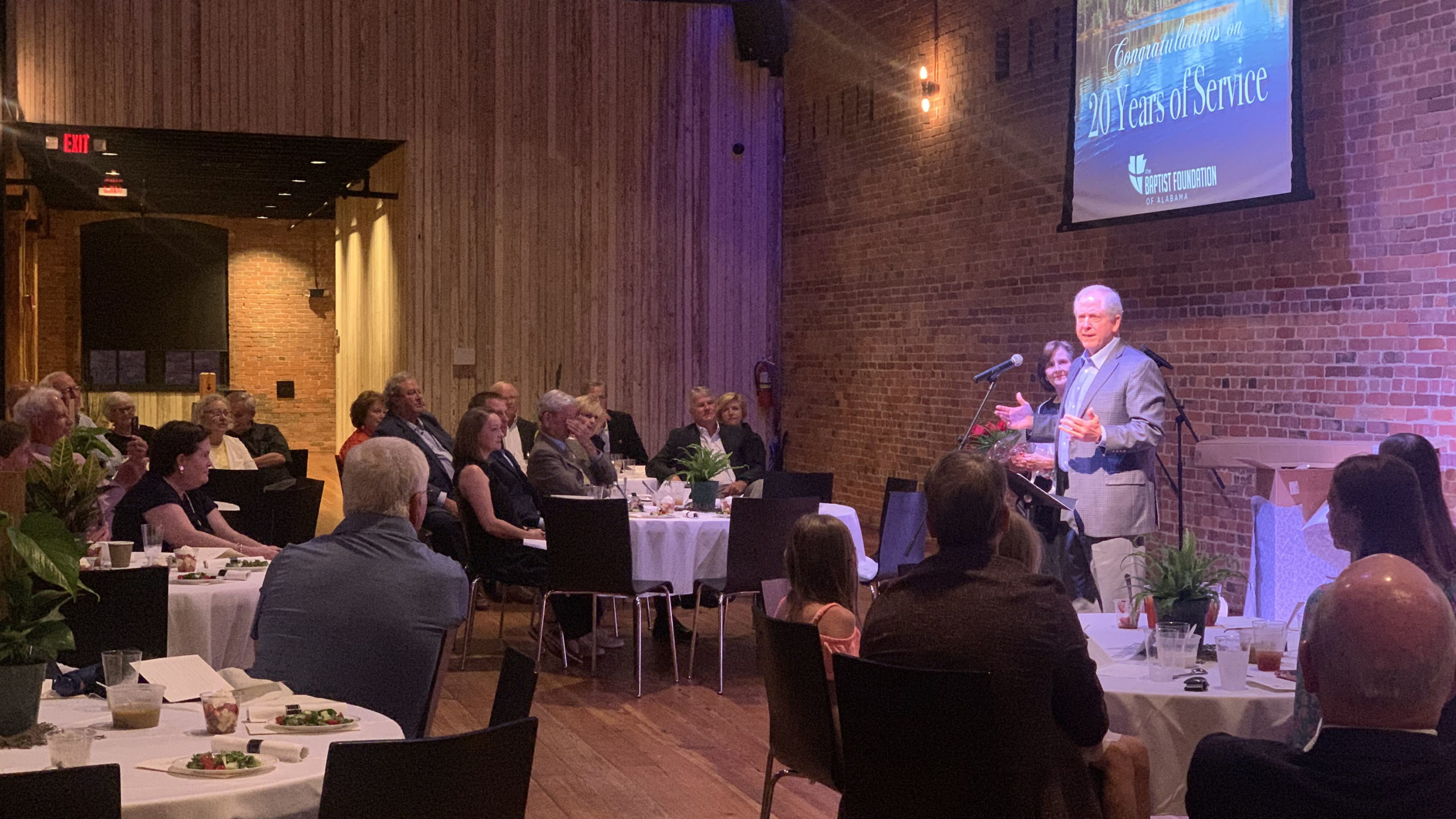 The Baptist Foundation of Alabama board of directors, staff, family and friends celebrate Barry and Judy Bledsoe for 20 years of service during a special dinner event in Montgomery in June.