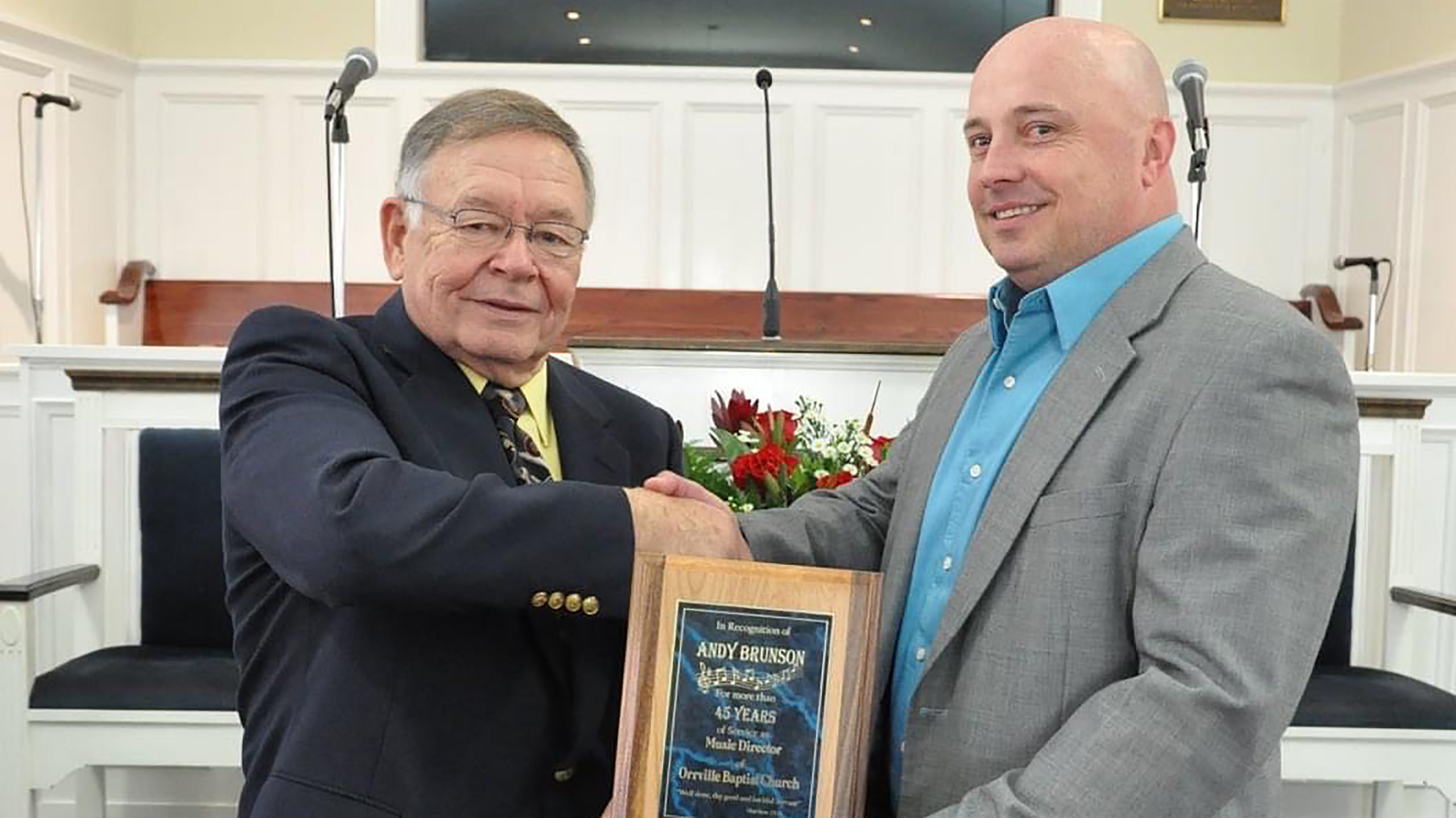 Liles shared his appreciation of Brunson: “He serves not only as music and choir director but as a deacon, and his love for the church is unquestioned. Andy demonstrates a faith that doesn’t just give the Lord his leftovers or what is considered ‘convenient,’ but gives all of himself for the One who gave all of Himself for our salvation.”